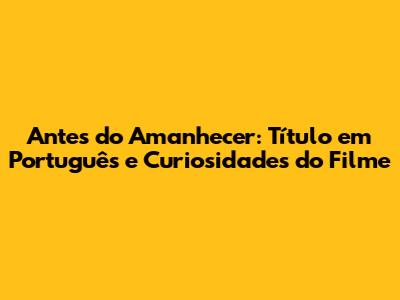 Antes Do Amanhecer: Título Em Português E Curiosidades