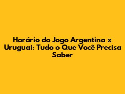 Horário Do Jogo Argentina X Uruguai: Saiba Tudo!
