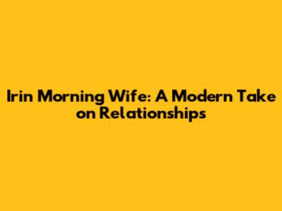 Irin Morning Wife: A Modern Take On Relationships