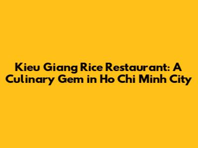 Kieu Giang Rice Restaurant: A Culinary Gem In Ho Chi Minh City
