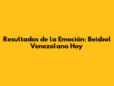 Resultados De La Emoción: Beisbol Venezolano Hoy